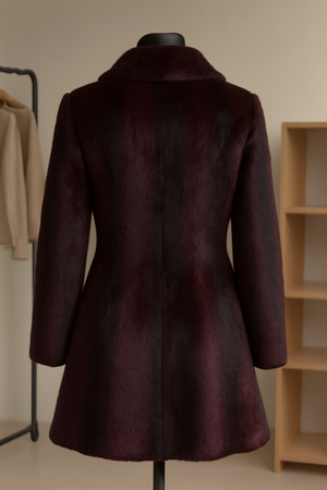 Luxurious Burgundy Faux Fur Coat with Elegant Button Detail